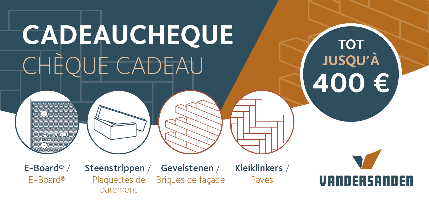 Geniet tot €125,- korting op uw gevelstenen/kleiklinkers/steenstrips of tot €400,- op uw E-board systeem.